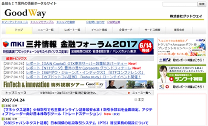 グッドウェイは、金融・IT業界に特化した情報サイトを運営するメディア・プロモーション・カンパニーです。イベントの企画運営、プロモーション、リサーチ、マーケティングに強みを持ち、金融・IT業界・産学官の有識者や専門家・メディア業界における1万4千人超のネットワークによりビジネスを推進するリレーションシップ・アドバイザーとして、金融・IT融合を通じた新産業の創造とフィンテックビジネスの発展を応援しています。
