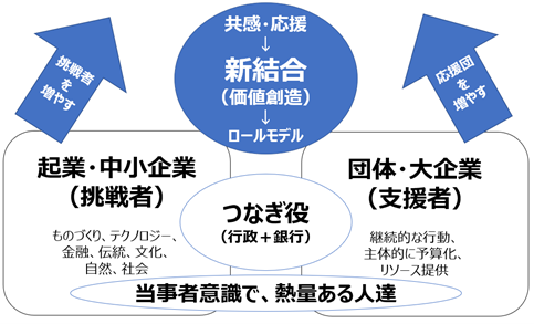 近年、人口減少、少子高齢化、地方創生といった日本の中長期にわたる社会的課題を前に、社会・産業・金融のさらなる変革や環境整備が進むことが予想される中、地域における企業、金融機関、地方自治体、政府機関などが連携し、地域の具体的な課題の解決に携わる当事者意識で熱量ある人達が有機的につながることで化学変化を起こし、具体的なアクションやプロジェクトにつなげていくことの重要性が高まっています。グッドウェイは、地域における関係者のネットワーク体系を「見える化」し、さらなる連携を目指す「地域経済エコシステム(※1)」の概念に共感し、全国47都道府県それぞれの地域の環境や特性を活かした経済エコシステムの実践を応援すべく、『共感のvia』のネットワークでつながる、山梨県、山形県、長野県、岐阜県、山口県、長崎県、熊本県、鹿児島県をはじめ、全国各地での取材活動やコミュニティ活動に参加し、その取組みを応援しています。