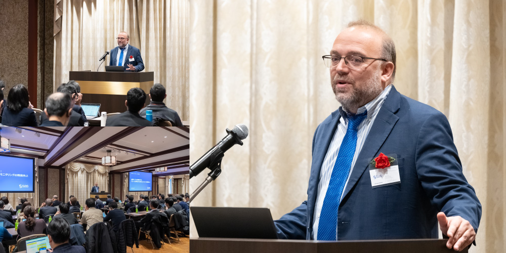 佐藤 慶一氏(日鉄ソリューションズ 金融ソリューション事業本部 営業本部 営業第一部 エキスパート)およびムロ・ジャパロフ氏(Fenergo Japan Head of Client Solutions (Japan & APAC) CAMS)は「Transforming AML KYC/KYA with Automation and AI」と題する講演を行った。