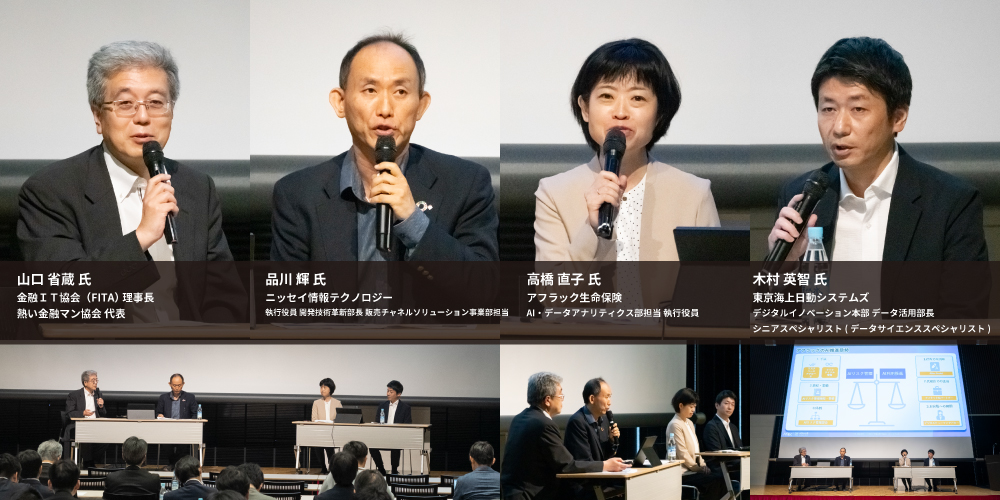 生成AIの業務活用が進む中、保険業界でも現場主導の変革が各社で加速している。本パネルでは、品川 輝氏(ニッセイ情報テクノロジー 執行役員 開発技術革新部長 販売チャネルソリューション事業部担当)、高橋 直子 氏(アフラック生命保険 AI・データアナリティクス部担当 執行役員)、木村 英智 氏(東京海上日動システムズ デジタルイノベーション本部 データ活用部長 シニアスペシャリスト(データサイエンススペシャリスト))の3名が登壇し、山口 省蔵 氏(金融IT協会(FITA) 理事長、熱い金融マン協会 代表)によるモデレーションのもと、生成AIに対する取り組みの全体像と現場の実践について語られた。