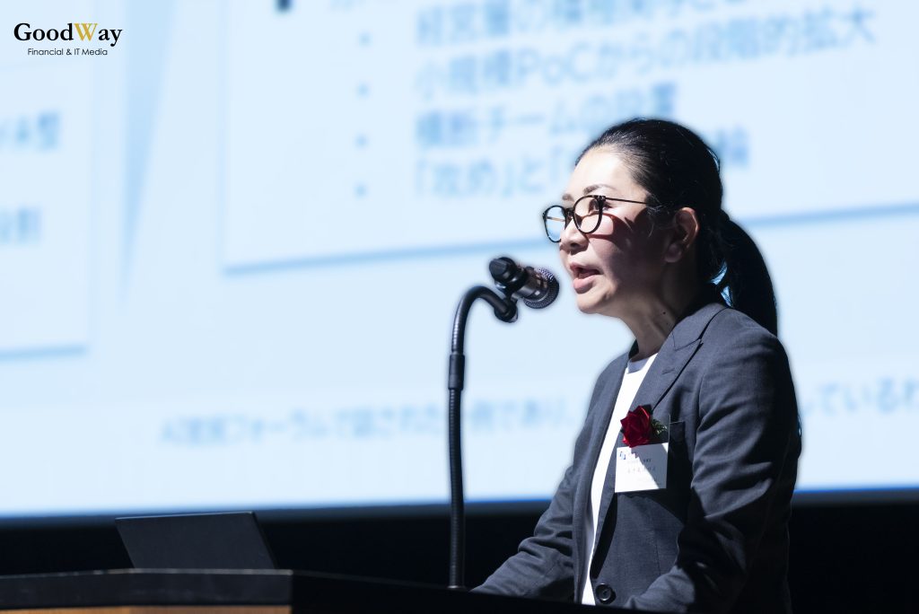最初の特別講演では、金融庁の五十嵐ほづえ氏が、DXとAI活用が求められる現代において、金融機関が直面するシステムとセキュリティの統合的な課題と、その対応の必要性を強調しました。